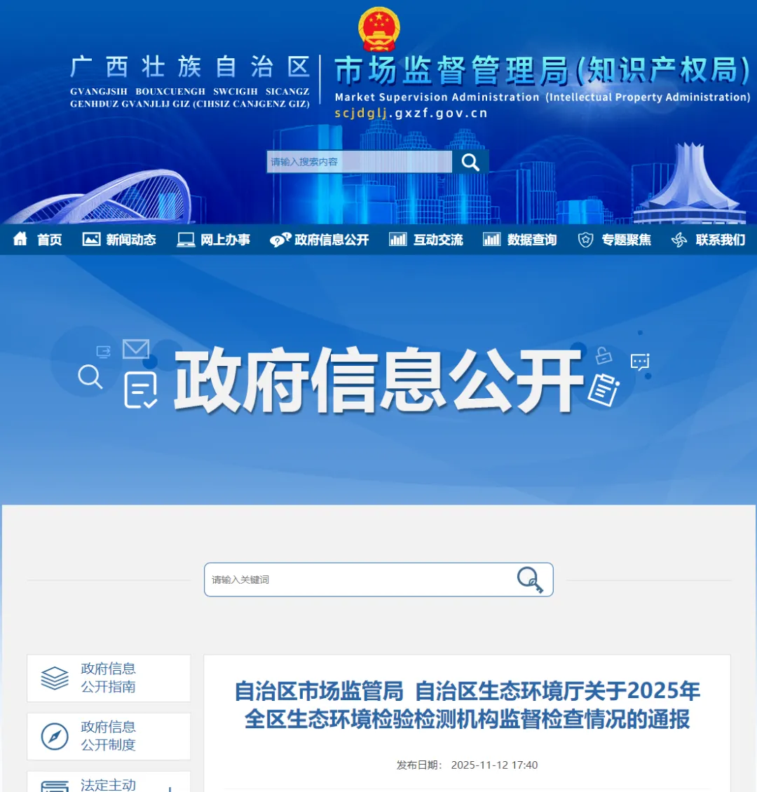 为进一步加强我区生态环境检验检测市场监管,强化检验检测机构主体责任意识,促进行业健康有序发展,自治区市场监管局、自治区生态环境厅于7月至8月,联合组织开展了2025年度全区生态环境检验检测机构专项监督检查。现将检查情况通报如下。